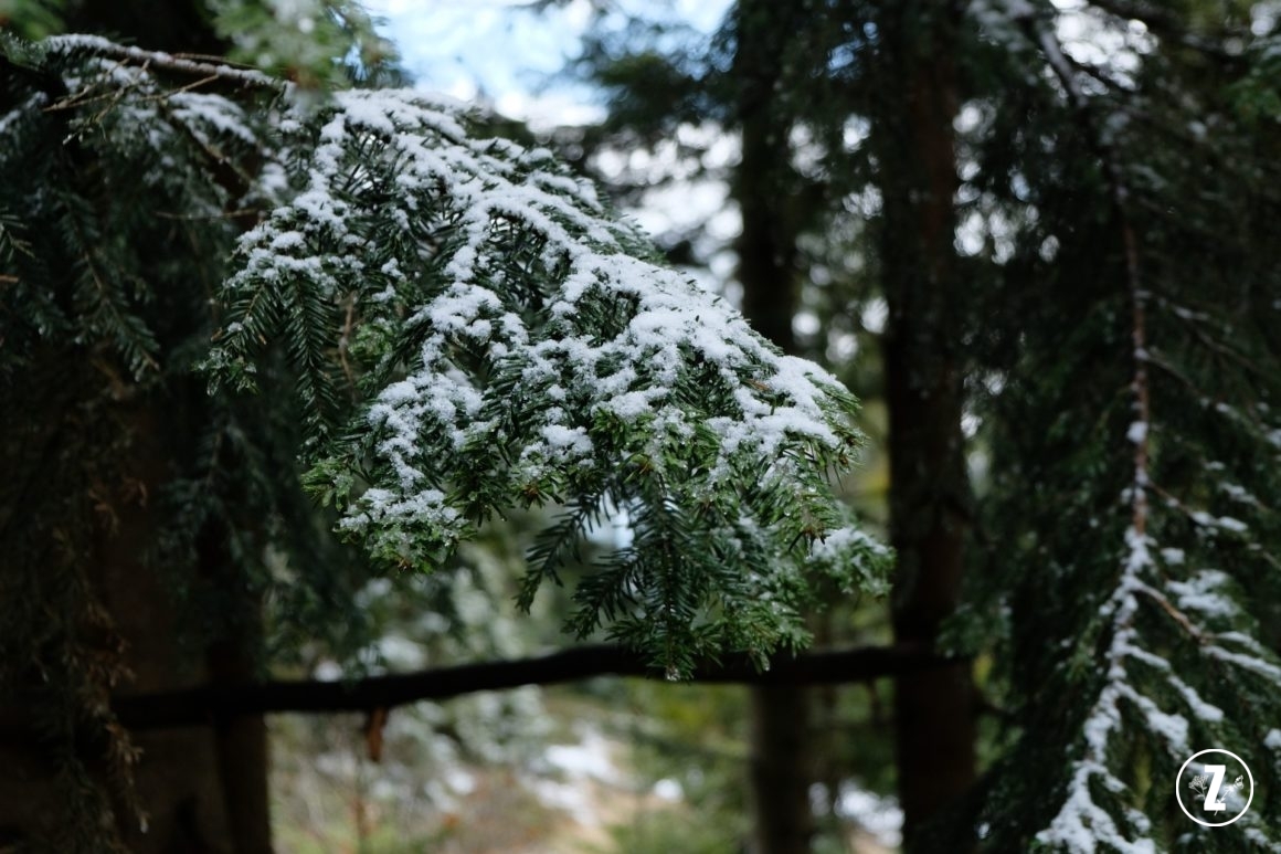 Na rozwidleniu szlaków ze znakami na Turbacz i Schronisko pod Turbaczem, polecam najpierw wejść na szczyt Turbacz. Jest to krótki, ale dość wymagający odcinek, nas dodatkowo uraczył niewielkim opadem śniegu, ale mimo to warto go pokonać. Ze szczytu do schroniska zejdziemy już w kilka minut i to w schronisku najlepiej jest zaplanować odpoczynek, np. z ciepłą herbatą lub posiłkiem. Kuchnia w schronisku, mimo pandemii, działa normalnie, na zewnątrz są stoły i ławki, a nawet miejsce na ognisko z altaną. Przy dobrej pogodzie sprzed schroniska możemy podziwiać piękną panoramę Tatr 😃