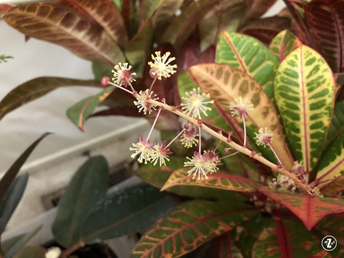 Ciekawostka Zazieleni! 🌼 Przy odpowiedniej pielęgnacji może się to zdarzyć, że nawet w naszych domowych warunkach kroton zakwitnie. Kwiaty wytwarzane są na długich, 10 cm pędach, są niestety małe i nie pachną.